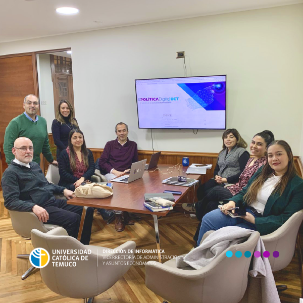 El día miércoles 19 de junio del 2024, se llevó a cabo la presentación de la Política Digital UCT al equipo de la Vice Gran Cancillería. Por medio de una presentación interactiva se da a conocer los ejes de la política y reflexionar respecto de ideas de implementación.